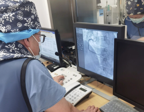 “时间就是心肌,时间就是生命!” 这是急性心梗救治中不变的准则。急诊科团队接诊后,迅速为丁女士完善心电图检查,结果提示:急性心肌梗死!情况刻不容缓,急诊科当即联系医院行政总值班,医院行政总值班接到通知后,当即下令启动 “先救人再付费” 的急诊抢救绿色通道,心血管疾病诊疗中心李桂武主任团队也第一时间奔赴导管室,术前准备同步推进。